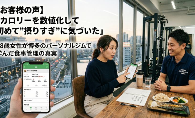 今回は、博多・呉服町エリアの当ジムに通われている28歳女性のM様が、**カロリーを数値化することで「食べすぎていた事実」に気づいた**エピソードをご紹介します。